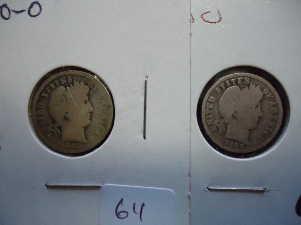 1900-O & 00-S BARBER DIMES