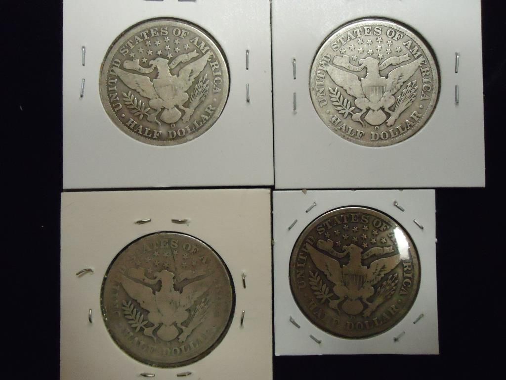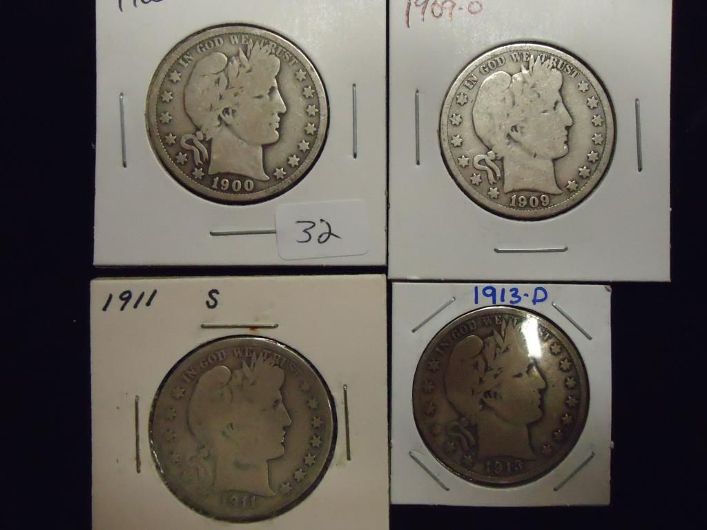 1900-O,09-O,11-S & 13-D BARBER HALF DOLLARS