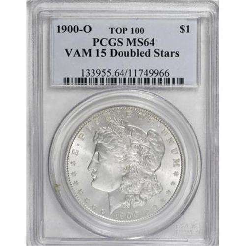 <B>1900-O $1 MS64 PCGS.</B></I> Vam-15. Double Stars. Top-100. PCGS Population (12392/5538). NGC Census: (13236/5778). Mintage: 12,590,000. Numismedia Wsl. Price for NGC/PCGS coin in MS64: $55. (#7266)<BR><BR><B>Coin Engraver:</B> George T. Morgan<BR><BR><b>Shipping:</b> Coins & Currency (<a target="_blank" href="http://www.heritageauctions.com/common/shipping.php">view shipping information</a>)