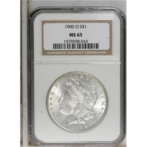 <B>1900-O $1 MS65 NGC.</B></I> NGC Census: (4822/741). PCGS Population (4675/713). Mintage: 12,590,000. Numismedia Wsl. Price for NGC/PCGS coin in MS65: $160. (#7266)<BR><BR><b>Shipping:</b> Coins & Currency (<a target="_blank" href="http://www.heritageauctions.com/common/shipping.php">view shipping information</a>)