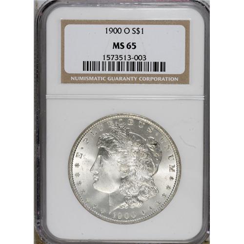 <B>1900-O $1 MS65 NGC.</B></I> NGC Census: (9600/1464). PCGS Population (4678/713). Mintage: 12,590,000. Numismedia Wsl. Price for NGC/PCGS coin in MS65: $160. (#7266)<BR><BR><b>Shipping:</b> Coins & Currency (<a target="_blank" href="http://www.heritageauctions.com/common/shipping.php">view shipping information</a>)