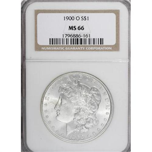 <B>1900-O $1 MS66 NGC.</B></I> . NGC Census: (729/55). PCGS Population (716/29). Mintage: 12,590,000. Numismedia Wsl. Price for NGC/PCGS coin in MS66: $460. (#7266)<BR><BR><B>Coin Engraver:</B> George T. Morgan<BR><BR><b>Shipping:</b> Coins & Currency (<a target="_blank" href="http://www.heritageauctions.com/common/shipping.php">view shipping information</a>)