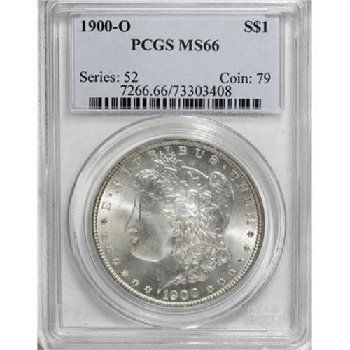 <B>1900-O $1 MS66 PCGS.</B></I> PCGS Population (731/29). NGC Census: (734/55). Mintage: 12,590,000. Numismedia Wsl. Price for NGC/PCGS coin in MS66: $460. (#7266)<BR><BR><B>Coin Engraver:</B> George T. Morgan<BR><BR><b>Shipping:</b> Coins & Currency (<a target="_blank" href="http://www.heritageauctions.com/common/shipping.php">view shipping information</a>)