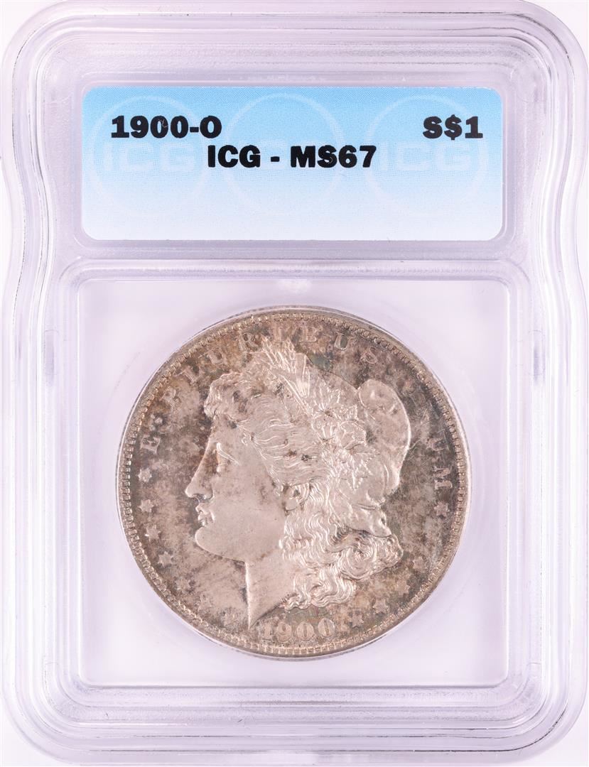 One 1900-O $1 Morgan Silver Dollar Coin ICG MS67. ICG Certified.