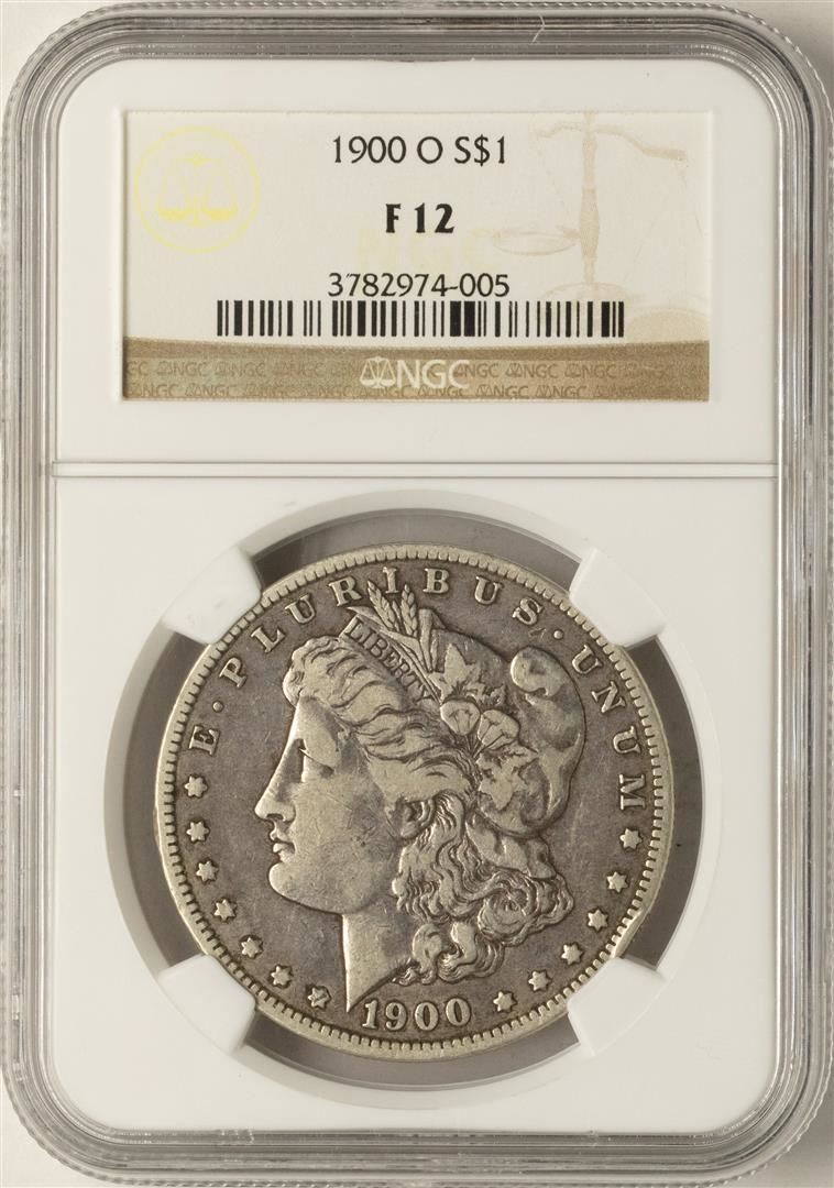 One 1900-O $1 Morgan Silver Dollar Coin NGC F12. NGC Certified.