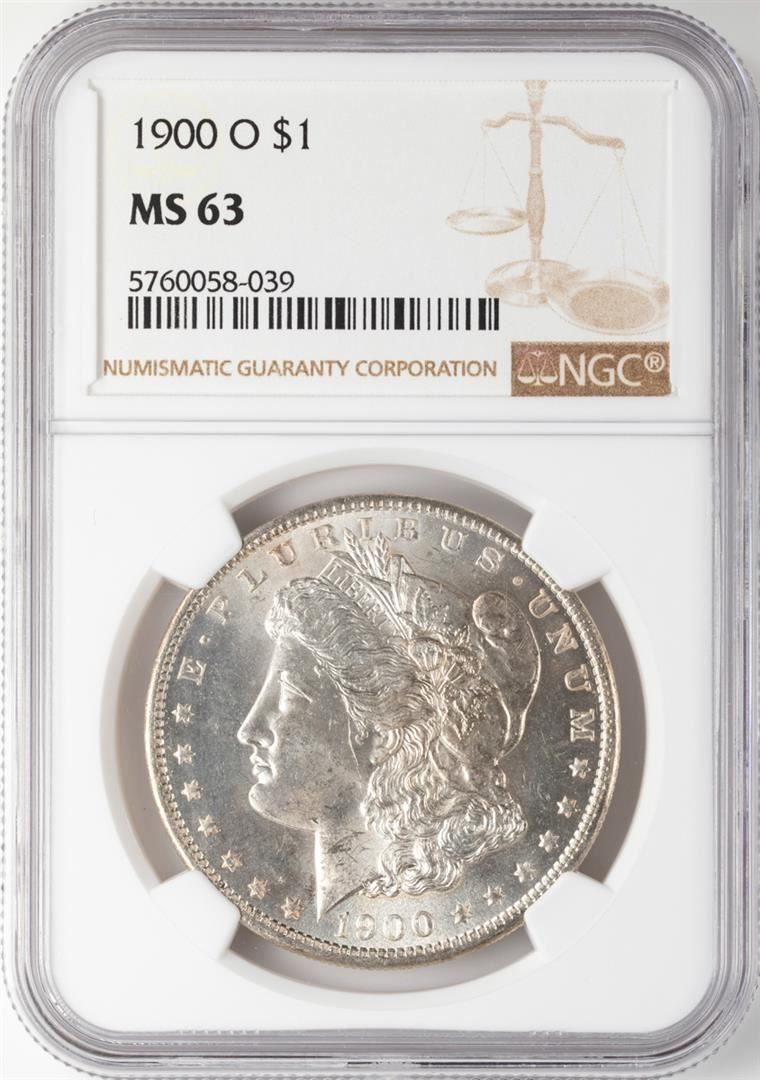 One 1900-O $1 Morgan Silver Dollar Coin NGC MS63. NGC Certified.
