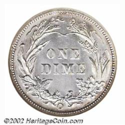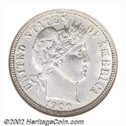 1900-O 10C MS64 NGC. The New Orleans Mint produced a not insignificant total of 2 million Dimes in 1900. Believe it or not, the 1900-O is the most underappreciated rarity in this series (per David Lawrence). Even well worn examples are elusive, and those Mint State survivors that approach the Gem threshold are rare. The present lot offers a brilliant-white example whose devices reveal needle sharp striking definition throughout. As befits the assigned grade, the surfaces are devoid of singularly distracting bagmarks. Population: 11 in 64, 14 finer (7/02).From the Ronald Bozarth Collection. Important notice: We expect to be auctioning lots at the rate of 200-250 per hour. Sometimes eBay Premier live bid software cannot keep up with that pace, so we strongly recommend that you place a realistic proxy bid now as insurance to avoid disappointment. Also please note that all Heritage/CAA lots purchased through eBay Premier carry a 20% Buyer's Premium. Please make sure you read the Terms and Conditions.