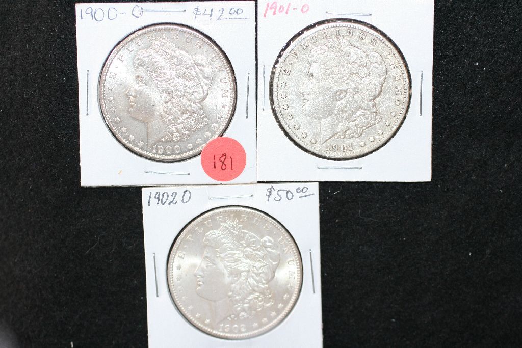 1900-O, 1901-O & 1902-O Silver Morgan $1; Lot of 3