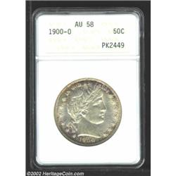 1900-O 50C AU58 ANACS. Satiny and mostly untoned in the centers with deeper russet accents around the margins.From the Ohio Collection. Important notice: We expect to be auctioning lots at the rate of 200-250 per hour. Sometimes eBay Premier live bid software cannot keep up with that pace, so we strongly recommend that you place a realistic proxy bid now as insurance to avoid disappointment. Also please note that all Heritage/CAA lots purchased through eBay Premier carry a 20% Buyer's Premium. Please make sure you read the Terms and Conditions.