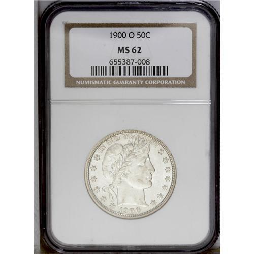 1900-O 50C MS62 NGC. Bright, lustrous surfaces display