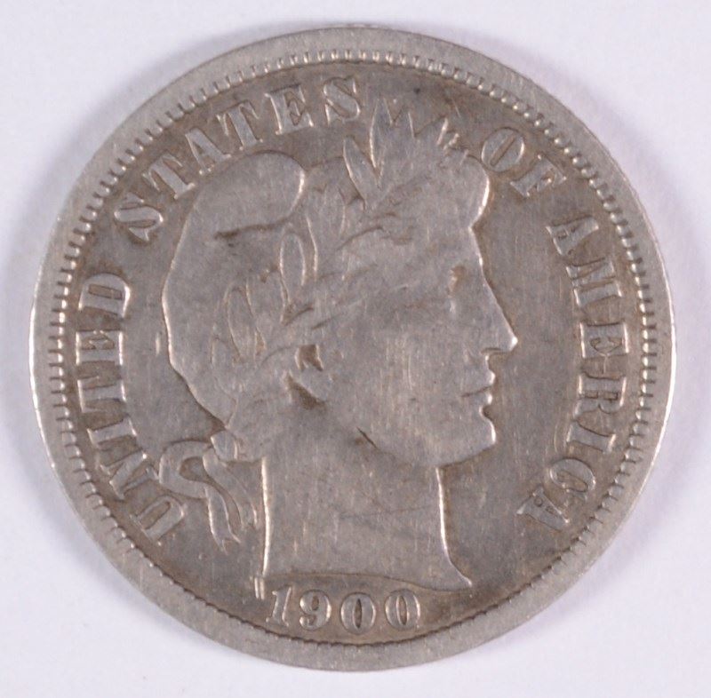 1900-O BARBER DIME, SCARCE DATE, ABOUT XF