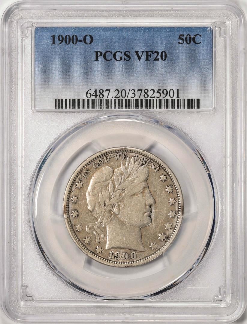 One 1900-O Barber Half Dollar Coin PCGS VF20. PCGS Graded.