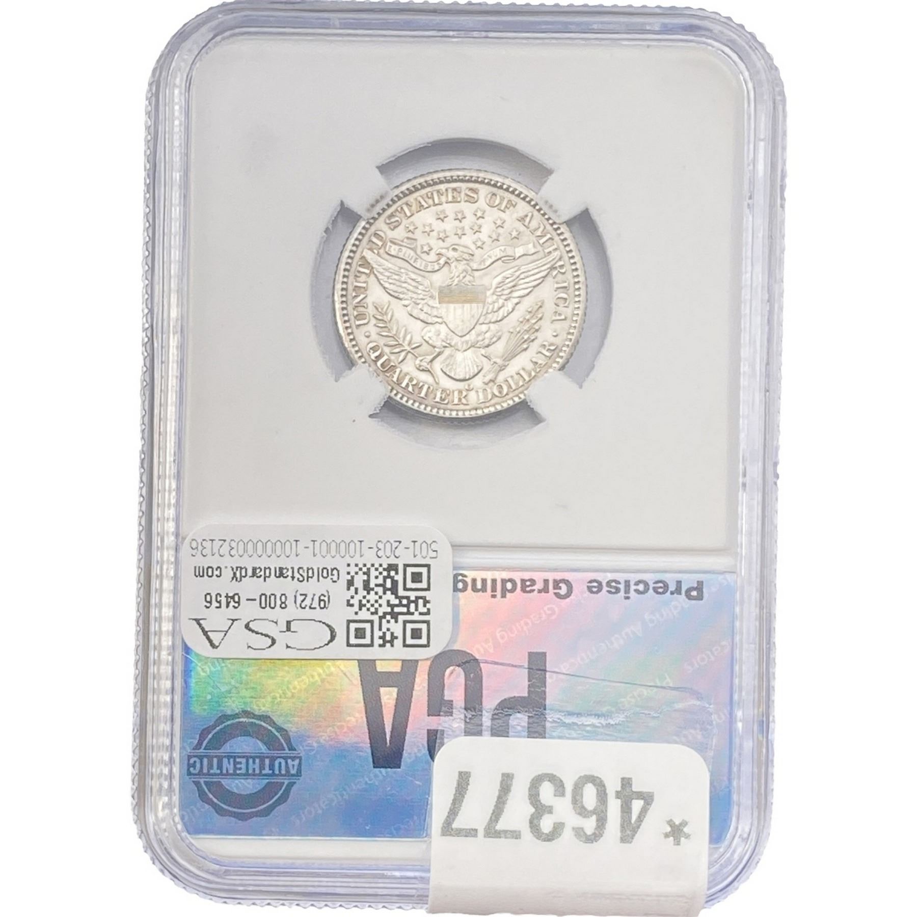 e. Coins sold referencing a third-party grading service are sold “AS IS” without any express or implied warranty, except for a guarantee by GSA that they are genuine. Removal or alteration of the holder, voids all of Bidder’s claims concerning that Product. Certain warranties may be available from the grading services and Bidders are referred to them for further details: Numismatic Guaranty Corporation (NGC), PO Box 4776, Sarasota, FL 34230, www.ngccoin.com/services/writtenguarantee.asp; Professional Coin Grading Services (PCGS), PO Box 9458, Newport Beach, CA 92658, www.pcgs.com/guarantee.html; ANACS, 6555 S. Kenton St., Ste. 303, Englewood, CO 80111; and Independent Coin Grading Co. (ICG), 7901 East Bellview, Ave., Suite 50, Englewood, CO 80111.