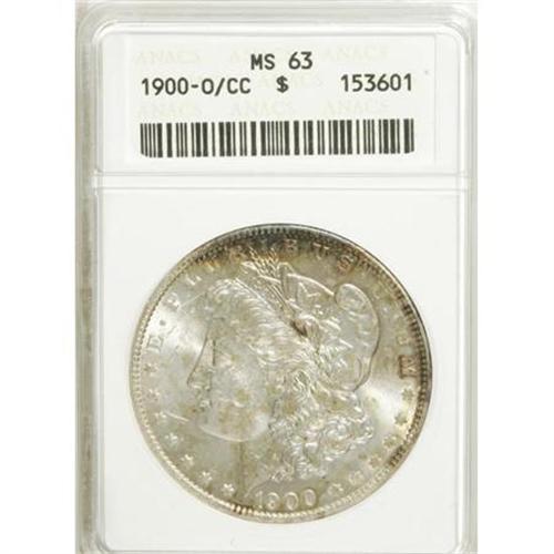 <B>1900-O/CC $1 MS63 ANACS.</B></I> NGC Census: (550/838). PCGS Population (1336/2395). Numismedia Wsl. Price for NGC/PCGS coin in MS63: $675. (#7268)<BR><BR><B>Coin Engraver:</B> George T. Morgan<BR><BR><b>Shipping:</b> Coins & Currency (<a target="_blank" href="http://www.heritageauctions.com/common/shipping.php">view shipping information</a>)