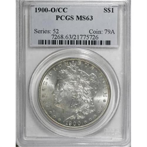 <B>1900-O/CC $1 MS63 PCGS.</B></I> VAM-10A. A Top 100 Variety. A die clash from the wing in front of Liberty's neck and the arrangement of fine die lines within LIBERTY, confirm the scarce VAM-10A. A lightly toned and lustrous piece, not fully struck above the ear but generally crisp throughout.<BR><I>Ex: Long Beach Signature (Heritage, 2/06), lot 2319.</B></I><BR><BR><B>Coin Engraver:</B> George T. Morgan<BR><BR><b>Shipping:</b> Coins & Currency (<a target="_blank" href="http://www.heritageauctions.com/common/shipping.php">view shipping information</a>)