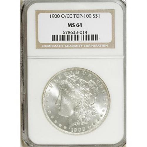 <B>1900-O/CC $1 MS64 NGC.</B></I> VAM-8. A Top 100 Variety. A brilliant near-Gem with blazing luster and beautifully preserved fields. The cheek has a few trivial grazes. Exceptional quality for this final Carson City collectible.<BR><BR><B>Coin Engraver:</B> George T. Morgan<BR><BR><b>Shipping:</b> Coins & Currency (<a target="_blank" href="http://www.heritageauctions.com/common/shipping.php">view shipping information</a>)