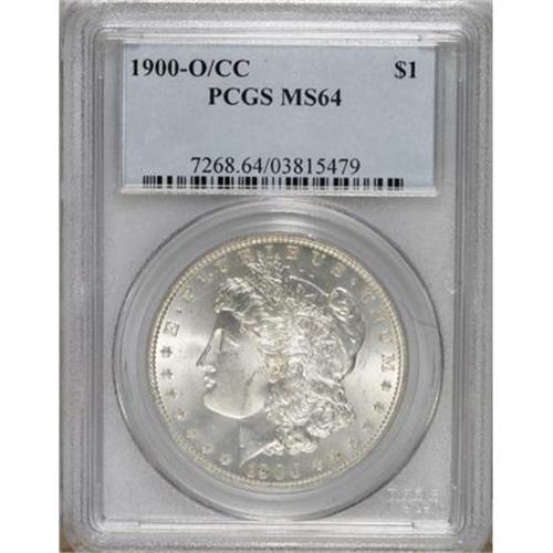 <B>1900-O/CC $1 MS64 PCGS.</B></I> VAM-8. A Top 100 Variety. This crisply struck, lustrous, and essentially brilliant near-Gem has remarkably clean fields. Only a solitary light vertical graze above the jaw prevents a much higher grade.<BR><BR><b>Shipping:</b> Coins & Currency (<a target="_blank" href="http://www.heritageauctions.com/common/shipping.php">view shipping information</a>)