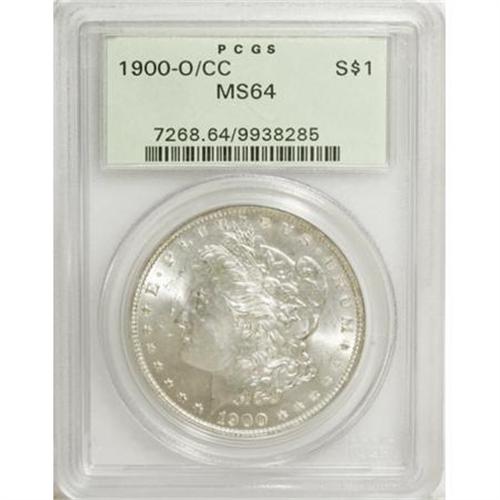 <B>1900-O/CC $1 MS64 PCGS.</B></I> VAM-12. A Top 100 Variety. Besides the obvious overmintmark, tiny die cracks identify the variety: faintly from star 1 through the bust truncation; through the right bow ribbon; and at the rear of Liberty's cap. A lustrous silver-white piece, in a green-label holder.<BR><BR><B>Coin Engraver:</B> George T. Morgan<BR><BR><b>Shipping:</b> Coins & Currency (<a target="_blank" href="http://www.heritageauctions.com/common/shipping.php">view shipping information</a>\)