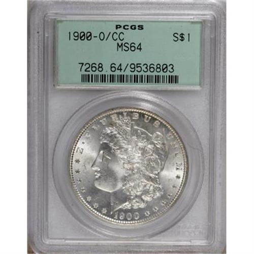 <B>1900-O/CC $1 MS64 PCGS.</B></I> VAM-11. A Top 100 Variety. The beginnings of a die crack appear below Liberty's hair at the lower right. A solidly struck, essentially untoned, and flashy representative of this turn-of-the-century overmintmarked issue, lightly marked and housed in a green label holder.<BR><BR><B>Coin Engraver:</B> George T. Morgan<BR><BR><b>Shipping:</b> Coins & Currency (<a target="_blank" href="http://www.heritageauctions.com/common/shipping.php">view shipping information</a>)