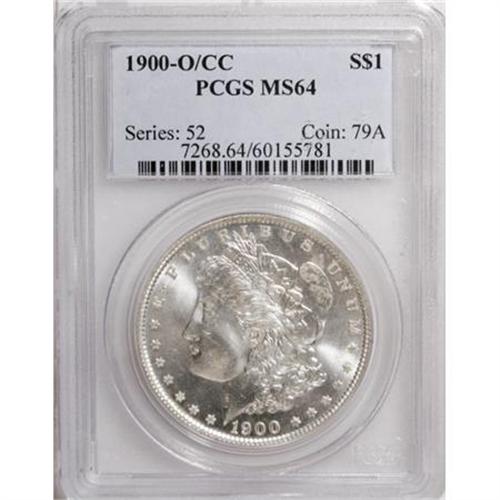 <B>1900-O/CC $1 MS64 PCGS.</B></I> VAM-11. A Top 100 Variety. An early die state without the horizontal crack above the bow knot. Well struck and nearly untoned with booming luster and smooth fields. The portrait displays minor marks.<BR><BR><B>Coin Engraver:</B> George T. Morgan<BR><BR><b>Shipping:</b> Coins & Currency (<a target="_blank" href="http://www.heritageauctions.com/common/shipping.php">view shipping information</a>)