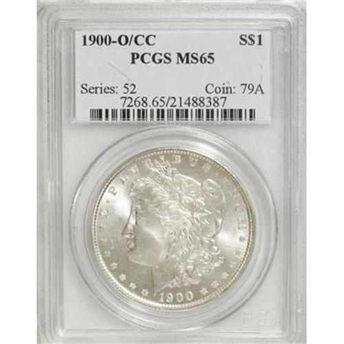 <B>1900-O/CC $1 MS65 PCGS.</B></I> VAM-11. A Top 100 Variety. The fine die crack from the hair above the last three stars helps to attribute the variety, and the crack embedded in the wreath at the bowknot confirms the later die state. This MS65 coin is a radiantly lustrous, untoned specimen that exhibits a sharp strike. A few minute marks are noted on the obverse. <BR><BR><B>Coin Engraver:</B> George T. Morgan<BR><BR><b>Shipping:</b> Coins & Currency (<a target="_blank" href="http://www.heritageauctions.com/common/shipping.php">view shipping information</a>)