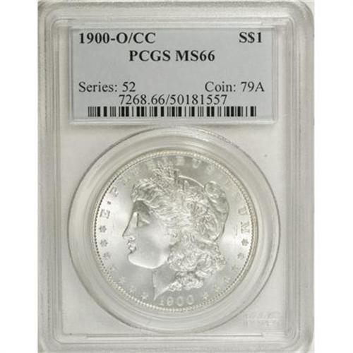 <B>1900-O/CC $1 MS66 PCGS.</B></I> VAM-11. A Top 100 Variety. According to Breen, several reverse working dies were found during the removal of furnishings from the Carson City Assay Office, which was previously the Carson City Mint. The dies were shipped to the Philadelphia Mint where they were modified for production of 1900 O-mint Morgan dollars. Variety specialists now believe that no fewer than seven reverse dies were overmintmarked for the 1900-O production, all of which show remnants of the original CC mintmark. While relatively easy to locate in lower grades, the O/CC is quite a challenge in the better Mint State grades. This is a brilliant coin that exhibits dazzling, satiny mint luster. Fully struck in the centers, and free from any annoying abrasions. Population: 76 in 66, 2 finer (6/07).<BR><I>From the Reuben Reinstein Collection.</B></I><BR><BR><b>Shipping:</b> Coins & Currency (<a target="_blank" href="http://www.heritageauctions.com/common/shipping.php">view shipping information</a>)