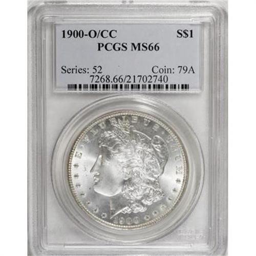 <B>1900-O/CC $1 MS66 PCGS.</B></I> VAM-8A. A Top 100 Variety. Identified by rust spots around the mintmark. This is an impeccable Premium Gem with brilliant silver surfaces and satin luster. Both sides are sharply defined with essentially full central details. Population: 73 in 66, 2 finer (9/07).<BR><BR><B>Coin Engraver:</B> George T. Morgan<BR><BR><b>Shipping:</b> Coins & Currency (<a target="_blank" href="http://www.heritageauctions.com/common/shipping.php">view shipping information</a>)