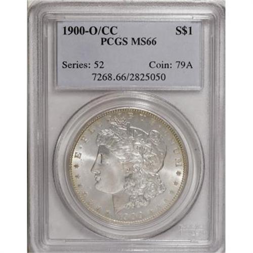 <B>1900-O/CC $1 MS66 PCGS.</B></I> VAM-8A. A Top 100 Variety. Light gold patina fills the borders of this lustrous and otherwise untoned Premium Gem. The fields are beautifully undisturbed. Nicely struck aside from the eagle's left (facing) claw. Since the Carson City Mint last struck coins in 1893, the reverse die apparently spent several years in storage before it was shipped to New Orleans to strike silver dollars at that location. Population: 72 in 66, 2 finer (12/07).<BR><I>From The Jimmy G. PCGS Registry Collection of Morgan Dollars with Varieties.</B></I><BR><BR><B>Coin Engraver:</B> George T. Morgan<BR><BR><b>Shipping:</b> Coins & Currency (<a target="_blank" href="http://www.heritageauctions.com/common/shipping.php">view shipping information</a>)