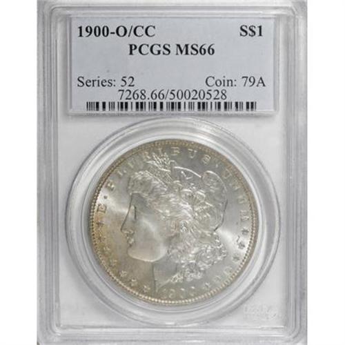 <B>1900-O/CC $1 MS66 PCGS.</B></I> VAM-8. A Top 100 Variety. A subtle crescent of lemon-gold patina visits the lower left obverse of this otherwise silver-white piece. Boldly impressed for the New Orleans issue with uncommonly vibrant luster and striking visual appeal. Among all 1900-O/CC variants, PCGS has graded a mere two finer pieces (2/08).<BR><I>From The Silver Spur Collection of Morgan Dollars.</B></I><BR><BR><B>Coin Engraver:</B> George T. Morgan<BR><BR><b>Shipping:</b> Coins & Currency (<a target="_blank" href="http://www.heritageauctions.com/common/shipping.php">view shipping information</a>)