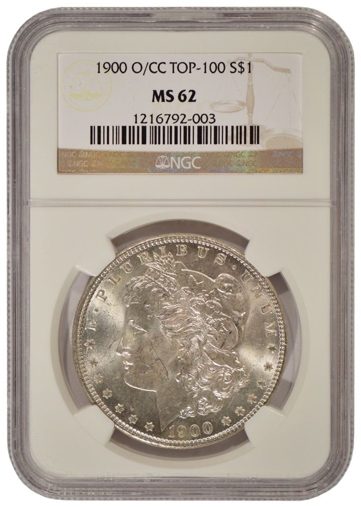 One 1900-O/CC $1 Morgan Silver Dollar Coin NGC MS62.