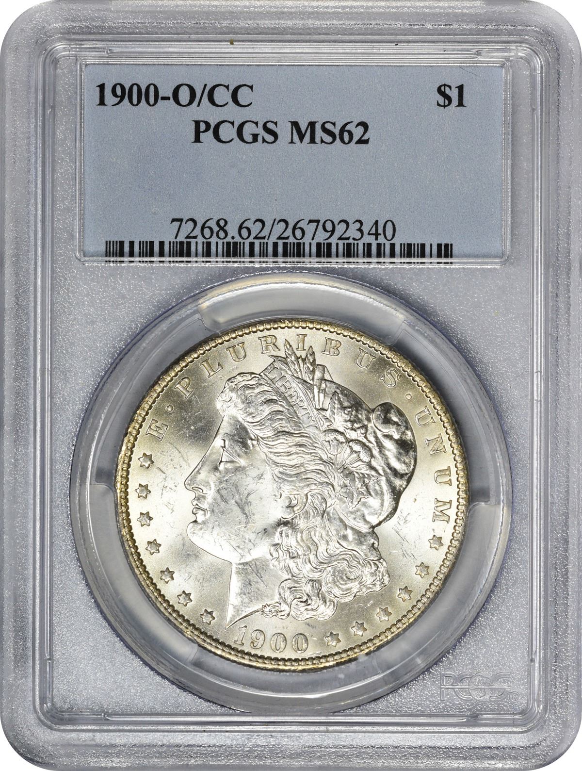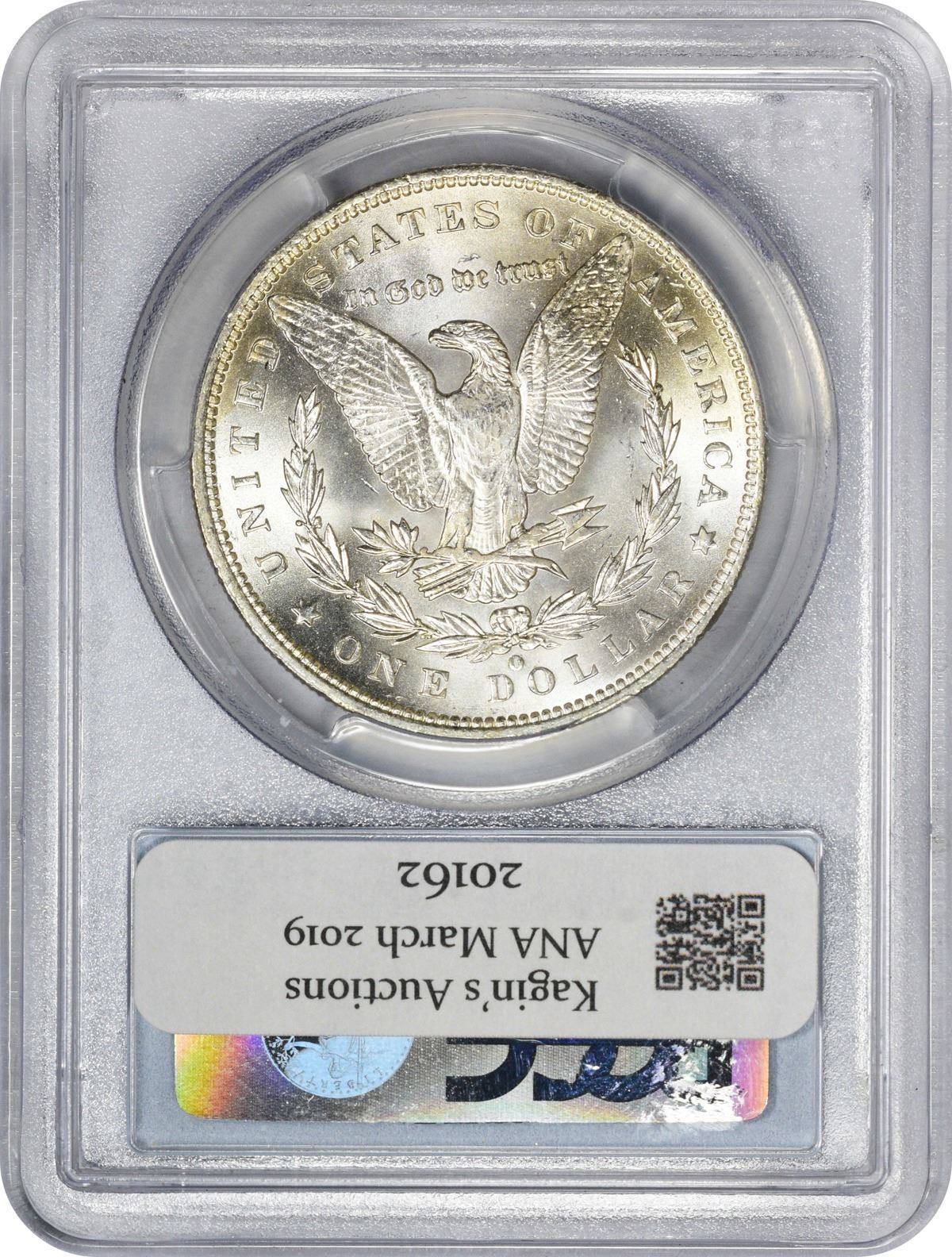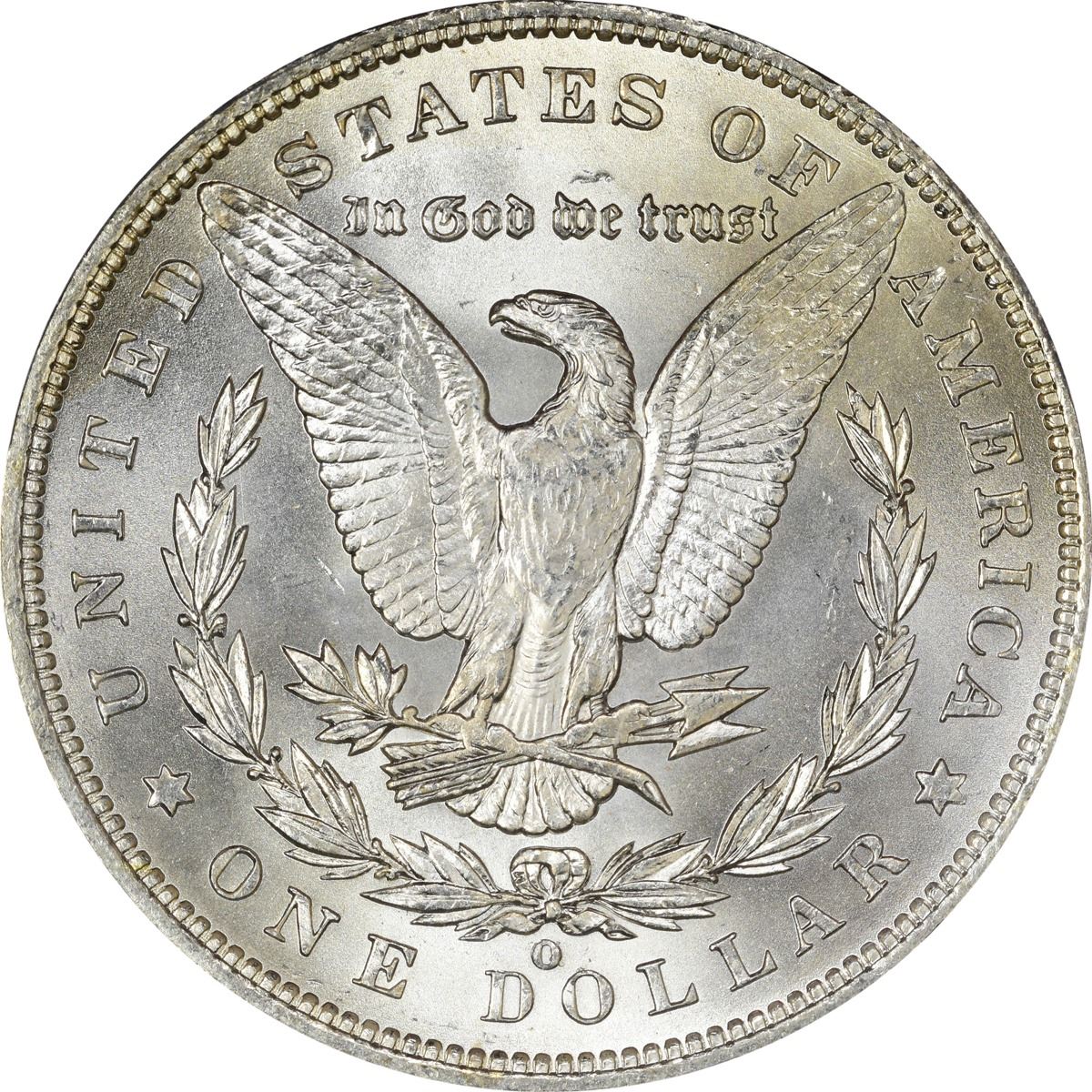 Boldly brilliant with exuberant cartwheel activity and plenty of eye appeal for the assigned grade. Scattered obverse ticks make for the assigned grade; the reverse is far finer overall. Remnants of the CC mintmark are plain to each side of the O mintmark, though the underlying CC fades significantly in later die states. Struck from a partly effaced and discarded Carson City reverse die that made its way to New Orleans for storage after the Nevada mint had closed its doors seven years earlier. Always a favorite among Morgan fanciers. Choice for the grade. PCGS #7268