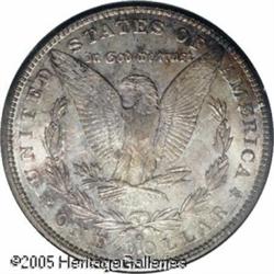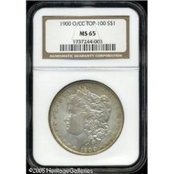 <B>1900-O/CC<img border='0' src='http://www.heritagecoins.com/images/star.gif' width=10 height=10>$1 MS65 NGC.</B></I> VAM-9. A Top 100 Variety. The key O/CC VAM, identified by repunching within the tops of the loops of the 0s in the date. The mint luster is full and coruscant with blushes of red-orange patina that further adds to the eye appeal. Lot:10571