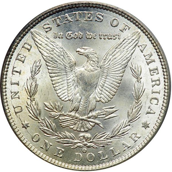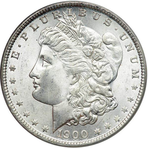 1900-O/CC Morgan Dollar. PCGS graded MS-65. Frosty and mostly untoned. In an old green label holder. This is a sparkling silver specimen radiating mint bloom, more than adequately struck (just shy of full at the centers) and impeccably preserved. Pop 698; 81 finer (PCGS # 7268) .
