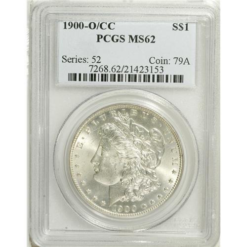 <B>1900-O/CC S$1 MS62 PCGS.</B></I> VAM-8. A Top 100 Variety. The second C appears in the form of spurs that protrude from the O mintmark. A highly lustrous example that has a decent strike, though the cheek has numerous light abrasions.<BR><BR><b>Shipping:</b> Coin/Currency (<a target="_blank" href="http://www.heritageauctions.com/common/shipping.php">view shipping information</a>)