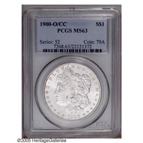 <B>1900-O/CC<S$1> MS63 PCGS.</B></I> VAM-11. A Top 100 Variety. A lustrous and sharply struck example of this interesting and popular overmintmarked issue. Brilliant aside from a dash of ebony color on the cheek, and quite clean for the grade save for a short obverse handling mark at 8 o'clock.