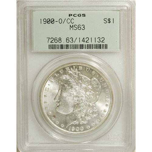 <B>1900-O/CC S$1 MS63 PCGS.</B></I> VAM-8A. A Top 100 Variety. A later die state with die rust near the mintmark, reminiscent of the 1879-CC "Capped Die" VAM. Faintly toned and highly lustrous with fewer marks than expected for the grade. Certified in an old green label holder.<BR><BR><b>Shipping:</b> Coins & Currency (<a target="_blank" href="http://www.heritageauctions.com/common/shipping.php">view shipping information</a>)