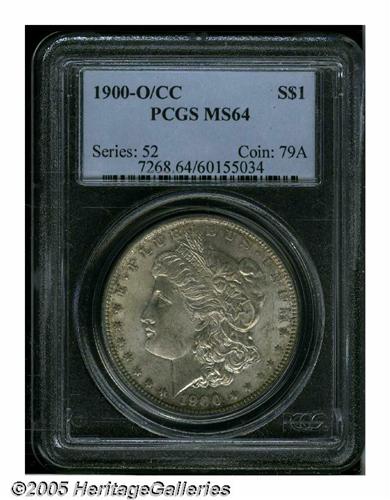 <B>1900-O/CC<S$1> MS64 PCGS.</B></I> VAM-12. A Top 100 Variety. Freckles of golden-brown color outline the legends and devices, and dashes of navy-blue toning cling to the reverse rim. A nicely struck and lustrous Choice overmintmarked Dollar.