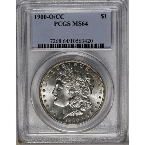 <B>1900-O/CC<img border='0' src='http://www.heritagecoins.com/images/star.gif' width=10 height=10>$1> MS64 PCGS.</B></I> VAM-8A. A Top 100 Variety. Generally brilliant, although a whisper of toning visits this suitably struck and thoroughly lustrous turn-of-the-century silver dollar. Clean despite a solitary reed mark beneath the mouth.