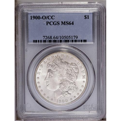 <B>1900-O/CC<img border='0' src='http://www.heritagecoins.com/images/star.gif' width=10 height=10>$1> MS64 PCGS.</B></I> VAM-11. A Top 100 Variety. Vestiges of a CC mintmark are visible beneath the O. Bright silver-gray surfaces display just a subtle hint of light tan color, as well as minor grade-defining marks on the cheek and the eagle. Nicely struck, save for minor softness in the hair over Liberty's ear. <BR><BR><B>Important notice:</B> Heritage usually auctions material at the rate of 200-250 lots per hour. On some occasions eBay Live bid software or the Internet may not be able to keep up with the pace of the auction. We recommend placing a realistic absentee bid now as insurance to avoid disappointment. Occasionally the auctioneer may eliminate or reject an eBay Live bid, and the auctioneer may also reopen a lot after the close of the eBay live bidding (usually because we missed an audience bid), and may reject your bid even if it shows you as the winning bidder. By bidding via eBay Live, you agree that Heritage may award the lot to another bidder at its sole discretion under the circumstances described above or any other reasonable circumstances. Since eBay bids are not shown to us until we open the lot on the floor, we treat those bids just like floor bids. In most cases the floor responds before the eBay bid is presented to us, due to Internet lag time, so for consistency we have made it a policy that floor bids are always considered first over tie eBay live bids. Also please note that all Heritage lots purchased through eBay Live carry a 20% Buyer's Premium. Please make sure you read the Terms and Conditions before you bid. This lot is being auctioned in conjunction with a live floor auction by Heritage Galleries & Auctioneers. All final auction and invoice information will be supplied by Heritage Galleries & Auctioneers, and all other information should be considered preliminary. Lot:3747 <BR><BR><B>Winning Notification and Billing:</B> After the FINAL session in this auction is complete, Heritage will send e-mail and snail mail invoices. This process normally takes several days. All final auction and invoice information will be supplied by Heritage Galleries & Auctioneers, and all other information should be considered preliminary. <BR><BR>This auction will be conducted on a live auction floor and over the Internet through eBay Live. If you choose to place an absentee bid, please take a moment to <font color='#0000ff'><u><a href='http://pages.ebay.com/liveauctions/help/before/laabsentee.html'>learn how eBay Live absentee bidding works</a></u></font><font color='#000000'>