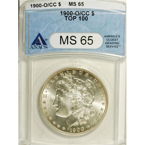 <B>1900-O/CC S$1 MS65 ANACS.</B></I> VAM-8. A Top 100 Variety. This beautiful Gem has booming luster and only a hint of gold toning. A sharply struck and unblemished example that will impress even the jaded specialist. VAM-8 and VAM-11 are two most often encountered of the six overmintmarked die pairings.<BR><BR><b>Shipping:</b> Coins & Currency (<a target="_blank" href="http://www.heritageauctions.com/common/shipping.php">view shipping information</a>)