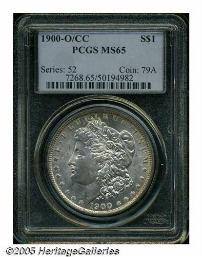 <B>1900-O/CC<S$1> MS65 PCGS.</B></I> VAM-11. A Top 100 Variety. Blushes of light peach patina hug the borders but do not encroach upon the centers. Luster sweeps unencumbered across this splendidly struck and lovely Gem. A later die state of the VAM, a slender die crack connects the tops of UNITED.