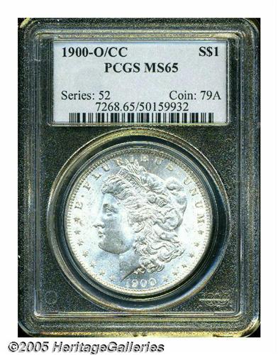 <B>1900-O/CC<S$1> MS65 PCGS.</B></I> VAM-12. A Top 100 Variety. Unlike some of the O/CC reverses, VAM-12 exhibits a virtually complete outline of the undermintmark, where not overlaid by the prominent New Orleans mintmark. An essentially brilliant Gem that has blazing luster and a needle-sharp strike. Beautifully preserved, and worthy of an outstanding collection of Morgan Dollars.