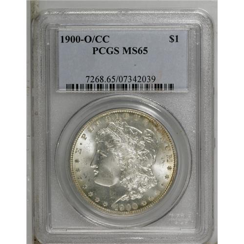 <B>1900-O/CC<img border='0' src='http://www.heritagecoins.com/images/star.gif' width=10 height=10>$1> MS65 PCGS.</B></I> VAM-12. A Top 100 Variety. The most prominent of the various O/CC VAMs. In particular, the right C is nearly complete except where overlaid by the New Orleans mintmark. Light honey hues enrich the margins, while the remainder of this lustrous Gem is brilliant. Well struck and splendidly smooth.