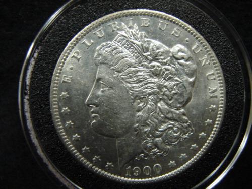 1900-O U.S. MORGAN SILVER DOLLAR. Coin is in circular case.