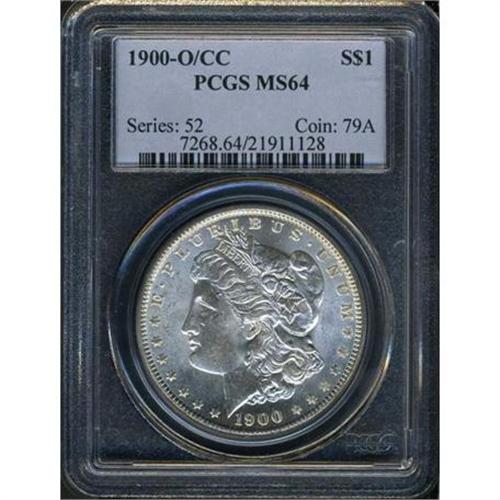 <b>1900-O Morgan Dollar. O over CC. PCGS graded MS64.</b> A lustrous example, fully struck with rippling silver color and almost as frosty as the gem MS65 before it. Extra crisp detail on all relief portions; only a couple of minor luster scuffs on the cheek and neck <b>(PCGS # 7268)</b>