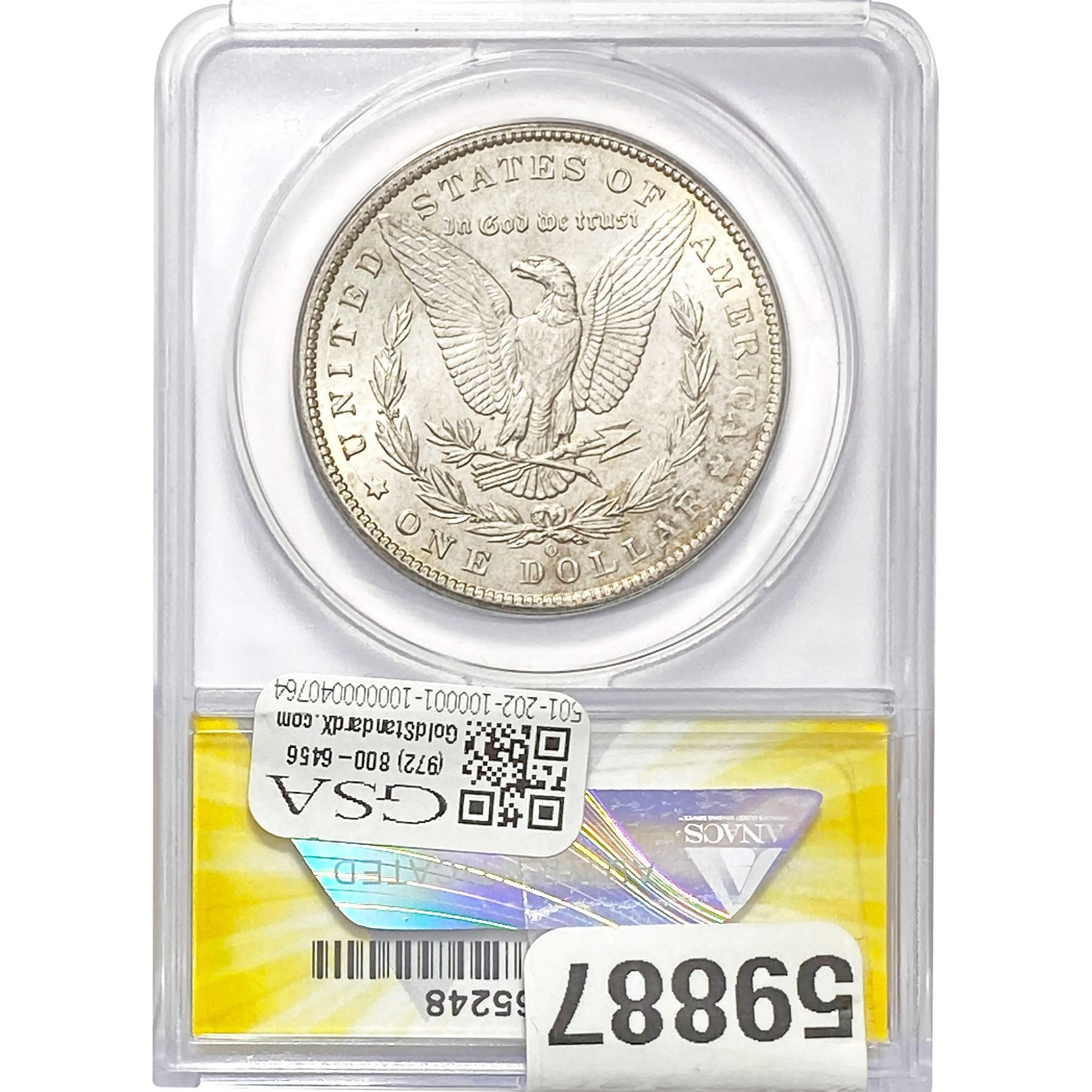 e. Coins sold referencing a third-party grading service are sold “AS IS” without any express or implied warranty, except for a guarantee by GSA that they are genuine. Removal or alteration of the holder, voids all of Bidder’s claims concerning that Product. Certain warranties may be available from the grading services and Bidders are referred to them for further details: Numismatic Guaranty Corporation (NGC), PO Box 4776, Sarasota, FL 34230, www.ngccoin.com/services/writtenguarantee.asp; Professional Coin Grading Services (PCGS), PO Box 9458, Newport Beach, CA 92658, www.pcgs.com/guarantee.html; ANACS, 6555 S. Kenton St., Ste. 303, Englewood, CO 80111; and Independent Coin Grading Co. (ICG), 7901 East Bellview, Ave., Suite 50, Englewood, CO 80111.