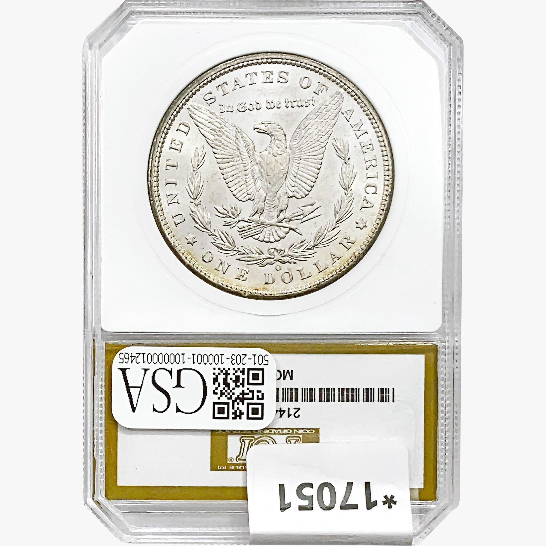 l. All non-certified coins and currency are guaranteed genuine, but are not guaranteed as to grade, since grading is a matter of opinion, an art and not a science, and therefore the description rendered by GSA or any third-party grading service may not agree with the opinion of others (including trained experts), and the same expert may not grade the same item with the same grade at two different times. GSA may, but is not obligated to, express an opinion as to non-certified numismatic items, in GSA’s opinion, or by its employees’ experience and the current interpretation of the American Numismatic Association’s standards as of the date the catalog was prepared. There is no guarantee or warranty expressed or implied that the grading opinions utilized by GSA, if any, will meet the standards of any grading service at any time in the future.