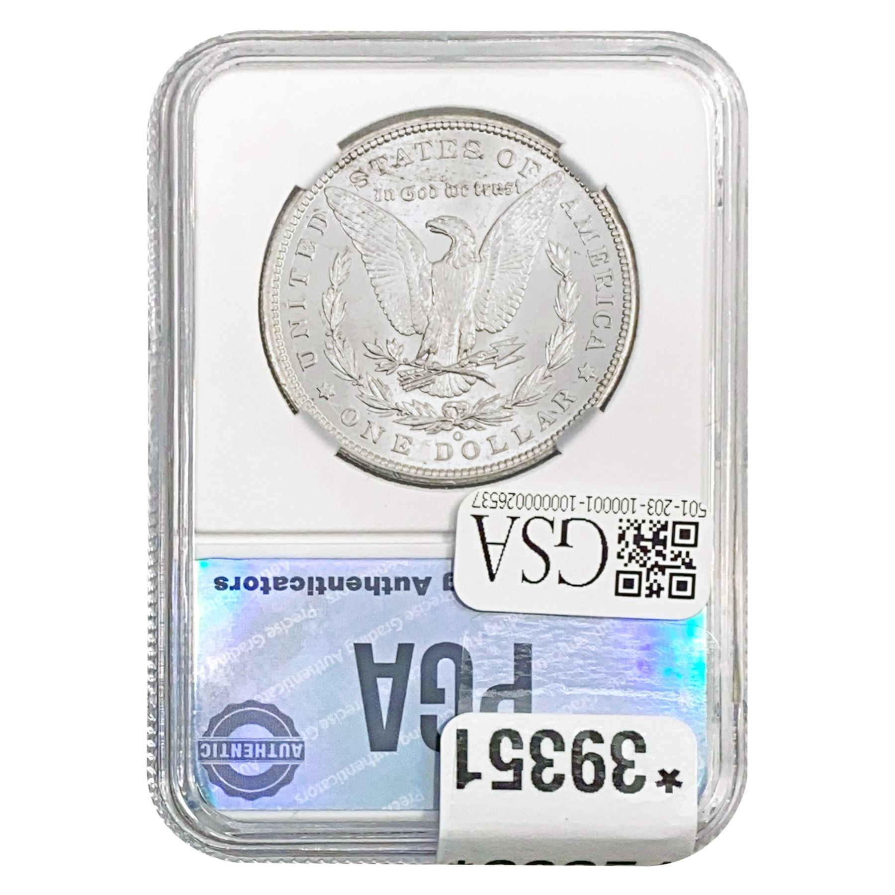 COINS AND CURRENCY LISTED IN GSA’S CATALOG AS GRADED AND ENCAPSULATED BY PCGS, NGC, ANACS, ICG, PCGS CURRENCY, PMG, PCGS BANKNOTE GRADING, CMC OR ANY OTHER THIRD-PARTY GRADING SERVICE ARE LIKEWISE SOLD “AS-IS” EXCEPT AS EXPRESSLY SET FORTH HEREIN. ALL THIRD-PARTY GRADING SERVICE GUARANTEES, INCLUDING AUTHENTICITY, ARE THE SOLE RESPONSIBILITY OF THE THIRD-PARTY GRADING SERVICE AND NOT WARRANTIES OR GUARANTEES OF GSA. BIDDERS SHOULD CONTACT THESE THIRD-PARTY GRADING SERVICES DIRECTLY WITH RESPECT TO ANY CLAIMS OR QUESTIONS THEY MAY HAVE CONCERNING THEIR GUARANTEES AND WARRANTIES. BIDDERS ACKNOWLEDGE AND AGREE THAT AUCTIONEER IS NOT BOUND BY OR LIABLE FOR ANY OPINION OR CERTIFICATION BY ANY THIRD-PARTY GRADING SERVICE. REMOVAL OF A PRODUCT FROM ITS PROTECTIVE CASING OR HOLDER OR ALTERATION OF ANY COIN HOLDER WAIVES ALL RIGHTS CONCERNING THE PRODUCT CONTAINED THEREIN.