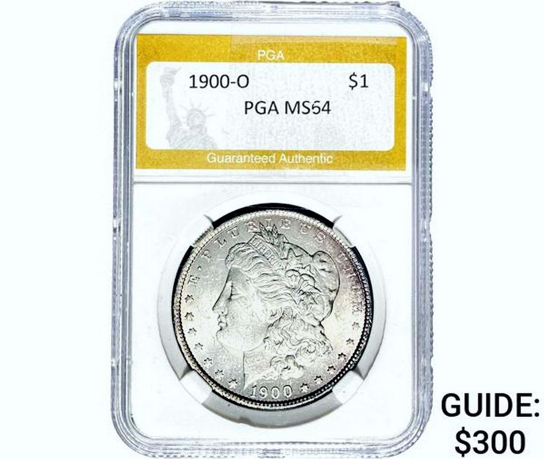 COINS AND CURRENCY LISTED IN GSA’S CATALOG AS GRADED AND ENCAPSULATED BY PCGS, NGC, ANACS, ICG, PCGS CURRENCY, PMG, PCGS BANKNOTE GRADING, CMC OR ANY OTHER THIRD-PARTY GRADING SERVICE ARE LIKEWISE SOLD “AS-IS” EXCEPT AS EXPRESSLY SET FORTH HEREIN. ALL THIRD-PARTY GRADING SERVICE GUARANTEES, INCLUDING AUTHENTICITY, ARE THE SOLE RESPONSIBILITY OF THE THIRD-PARTY GRADING SERVICE AND NOT WARRANTIES OR GUARANTEES OF GSA. BIDDERS SHOULD CONTACT THESE THIRD-PARTY GRADING SERVICES DIRECTLY WITH RESPECT TO ANY CLAIMS OR QUESTIONS THEY MAY HAVE CONCERNING THEIR GUARANTEES AND WARRANTIES. BIDDERS ACKNOWLEDGE AND AGREE THAT AUCTIONEER IS NOT BOUND BY OR LIABLE FOR ANY OPINION OR CERTIFICATION BY ANY THIRD-PARTY GRADING SERVICE. REMOVAL OF A PRODUCT FROM ITS PROTECTIVE CASING OR HOLDER OR ALTERATION OF ANY COIN HOLDER WAIVES ALL RIGHTS CONCERNING THE PRODUCT CONTAINED THEREIN.