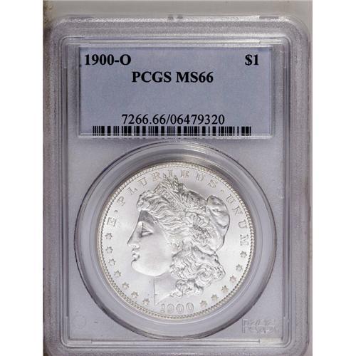 <B>1900-O<img border='0' src='http://www.heritagecoins.com/images/star.gif' width=10 height=10>$1> MS66 PCGS.</B></I> A gleaming and brilliant example. This piece has excellent luster and a sharp strike, though a couple of tiny marks appear on Liberty's cheek.